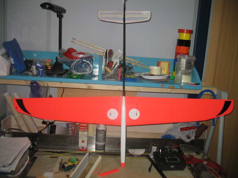 но лично по моим ощущениям , для металки на несущее крыло она слабовата, возможно я ошибаюсь! поэтому для сохранения жесткости решил оставить на крыле ранее обтянутый ораковер, в итоге модель без начинки весит 302 грамма, плюс все жизненно необходимые внутренности еще 94грамма. тяжеловата ! но эта первая модель, при постройке следующей уже учту все за и против, и эксплуатация обязательно внесет свои коррективы. вообщем так или иначе всем доволен! птичка обязательно полетит, определенный опыт я набрал, а это уже уверенный второй шаг к успеху