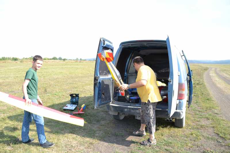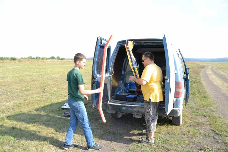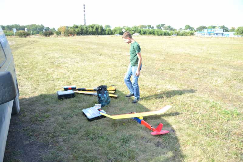 Олег на старте с мотопланером