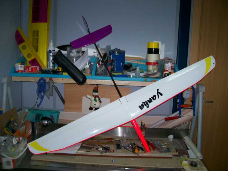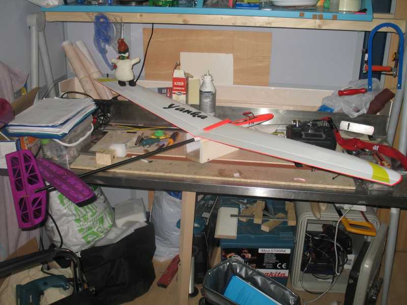 но лично по моим ощущениям , для металки на несущее крыло она слабовата, возможно я ошибаюсь! поэтому для сохранения жесткости решил оставить на крыле ранее обтянутый ораковер, в итоге модель без начинки весит 302 грамма, плюс все жизненно необходимые внутренности еще 94грамма. тяжеловата ! но эта первая модель, при постройке следующей уже учту все за и против, и эксплуатация обязательно внесет свои коррективы. вообщем так или иначе всем доволен! птичка обязательно полетит, определенный опыт я набрал, а это уже уверенный второй шаг к успеху