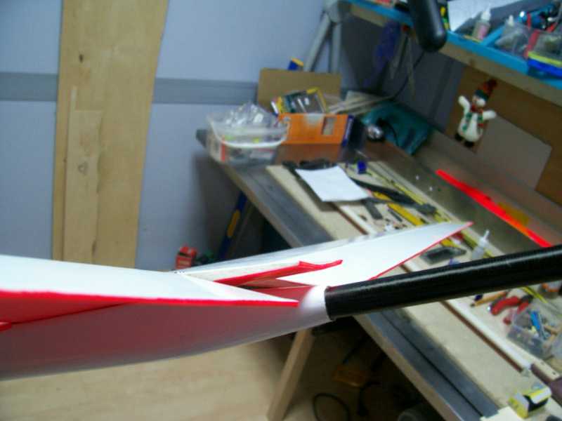 продолжим! в связи с задней центровкой и нежелательной лишней массы, боудены демонтировал, плюс перетянул хвостовое оперение вот такой пленочкой